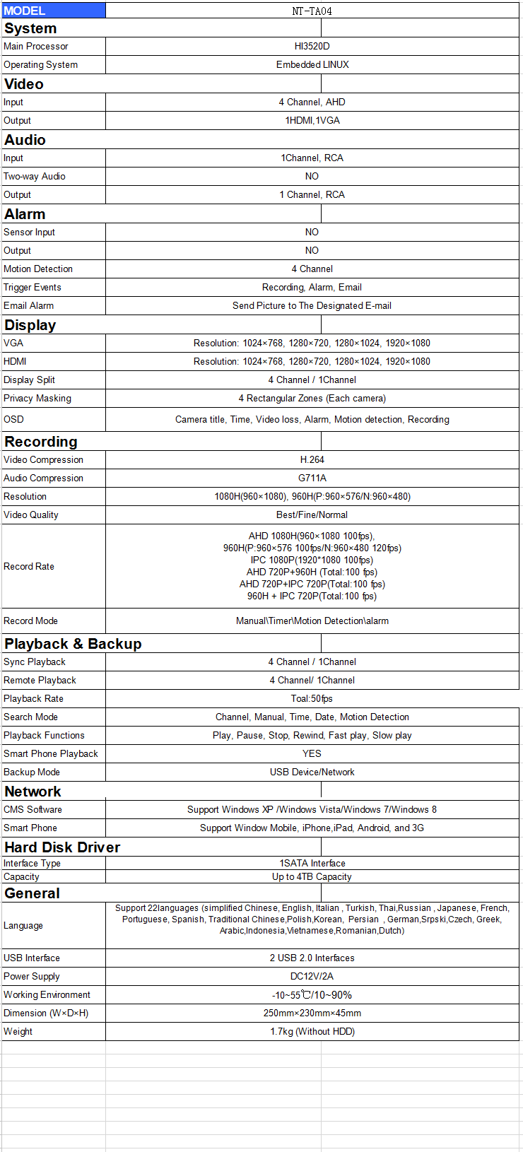 4CH  1080P AHD DVR KITS